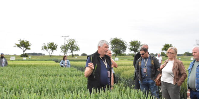 A szántóföldi bemutató első részében a köztermesztésbe ajánlott regisztrált fajtákról Csémy Tibor a nemesítő állomás munkatársa nyújtott tájékoztatót. Az ismert és bevált IS Conditor, IS Spirella, IS Laudis mellett a szálkás kalászú IS Agilis extra koraiságával, az IS Dimenzio ellenálló képességével, az IS Rubicon kiemelkedő, a hibrideket közelítő hozamképességével, az IS Bellevue magas fehérjetartalmával, az IS Carrier kiváló sütőipari minőségével tűnik ki. Az IS Ozirion-t szilárd szár és kiváló alkalmazkodó képesség, az IS Sorello-t kimagasló hozamképesség és termésstabilitás jellemzi. A fajtabemutatót Zalabai Gyula az IS Chanson középkorai érésű, ugyancsak elit minőségű búzafajtával folytatta, amely kompenzációs képessége alapján jól viseli a kevésbé kedvező termesztési feltételeket, sőt a kései vetést is. Kiváló reológiai, sütőipari értékekkel rendelkezik. Az IS Spirellina az IS Spirella utóda. Nagyon korai érésű, kiváló minőségi és agrotechnikai mutatókkal rendelkezik. Keresztezéssel javítottak a rozsdabetegségekkel szembeni ellenálló képességén. Az IS Primator sötétbarna magvú, szálkás kalászú szuperkorai búzafajta, amely 13,5 %-os fehérjetartalmával megfelel az élelmiszeripari minőség követelményének is. Az IS Bonario sárga pigmenttartalmú gabonaszemei révén a speciális pékipari termékek számára kínál alapanyagot.